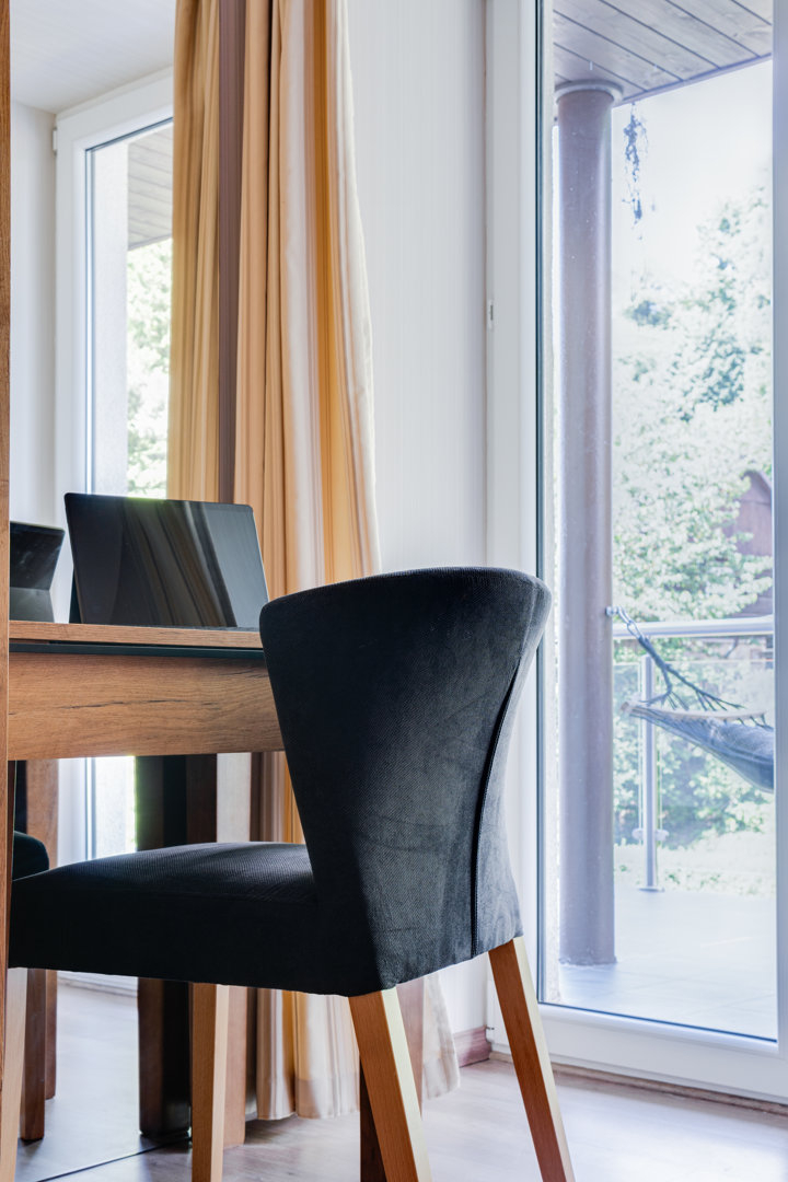 Wyposażenie: aneks kuchenny, zmywarka, lodówka, mikrofalówka, zestaw ekspresów do kawy, zestaw do gotowania na parze, blender ręczny, naczynia, pralko-suszarka, suszarka do włosów, ręczniki, żelazko, deska do prasowania, odkurzacz, mop. Dodatkowo przestronny taras wyposażony w wygodne meble ogrodowe.